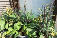 観賞用の菜の花の蕾を一寸摘まんでラーメンや味噌汁に…待てよ、この場所、向日葵・秋桜に、区画が隣か一緒か有毒曼殊沙華。