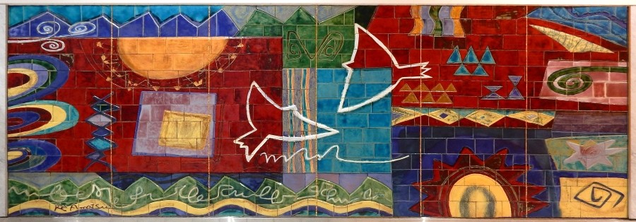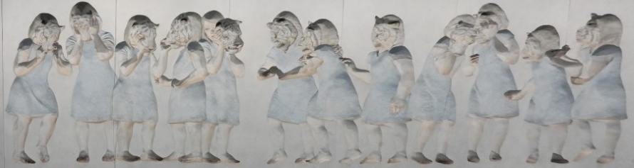 中谷 ミチコ【白い虎が見ている】凹面レリーフ(画像クリックで反転します) 虎ノ門駅